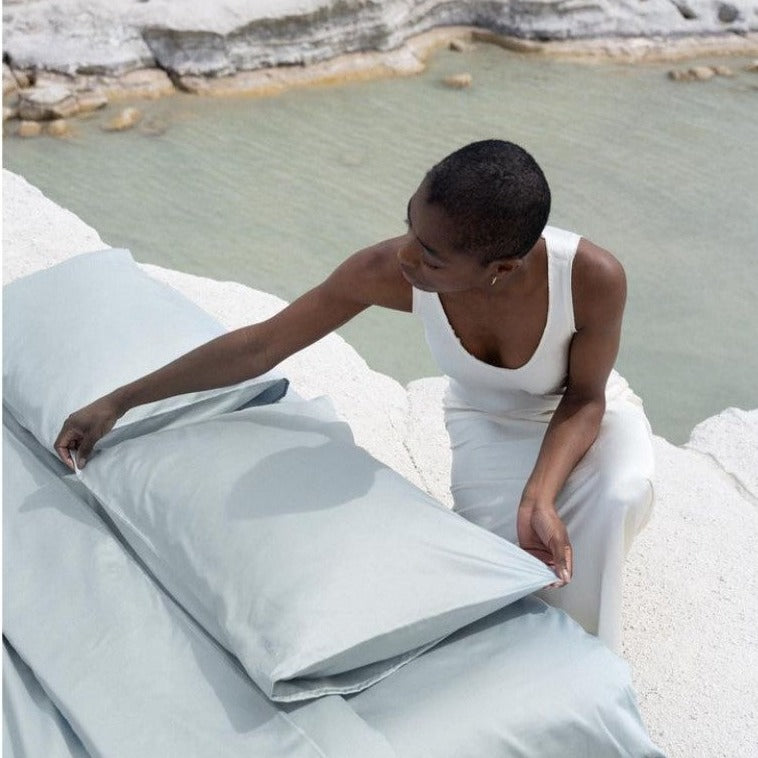 Abate putetrekk er laget i Portugal av 100% Øko-tex®-sertifisert, håndplukket, egyptisk Giza-bomull. Stoffet er tynnere og finere enn annet bomullsstoff, og kjennes luftigere og mykere mot huden. Samtidig er holdbarheten lengre.