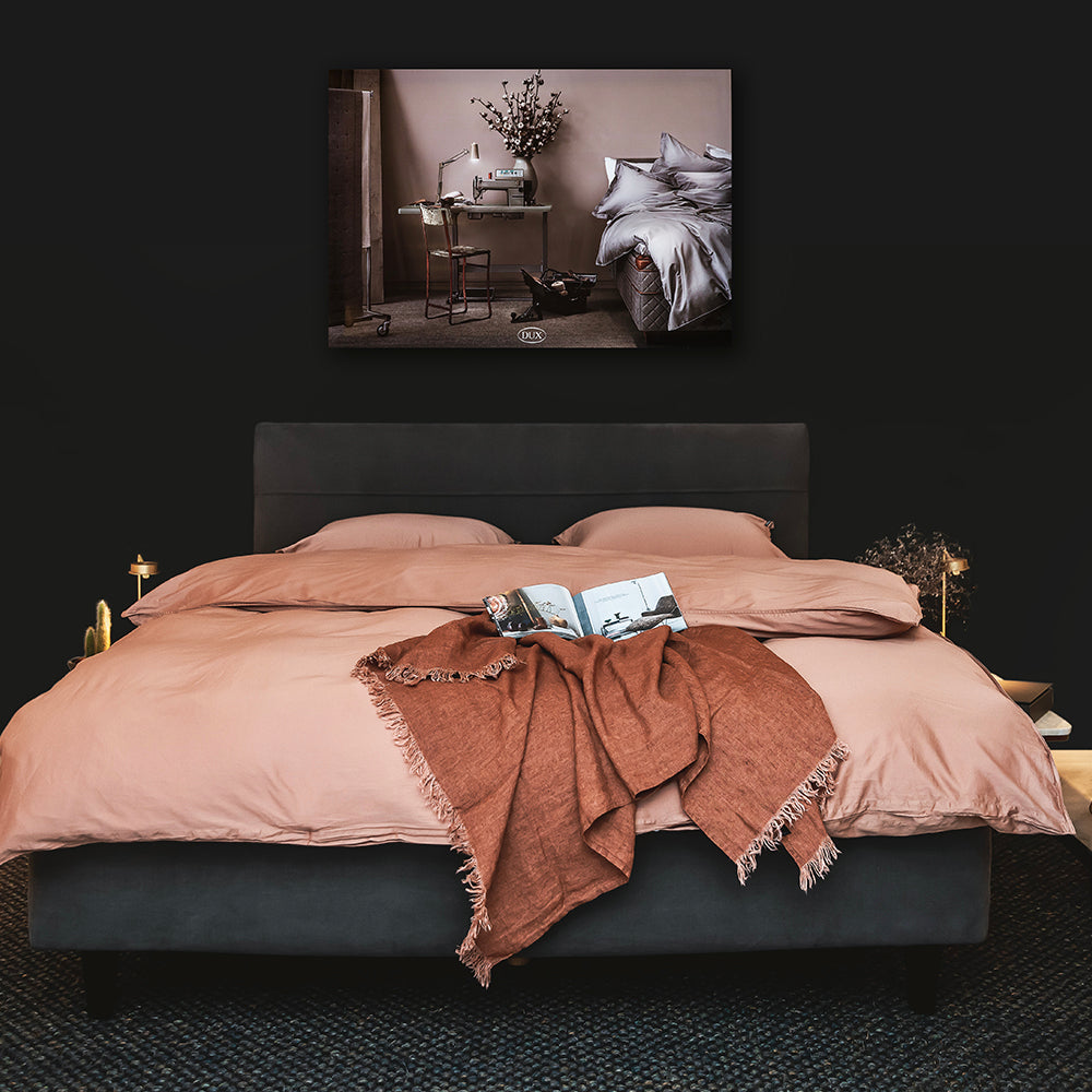 Et håndlaget trekk til sengen, laget med et utvalgt kvalitetsstoff fra DUX. Gir sengen din et personlig preg. Trekket er tettsittende og jevnt rundt hele madrassen.