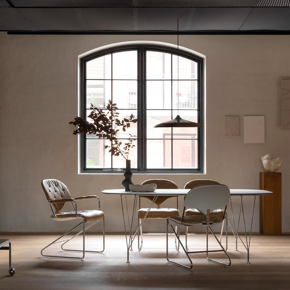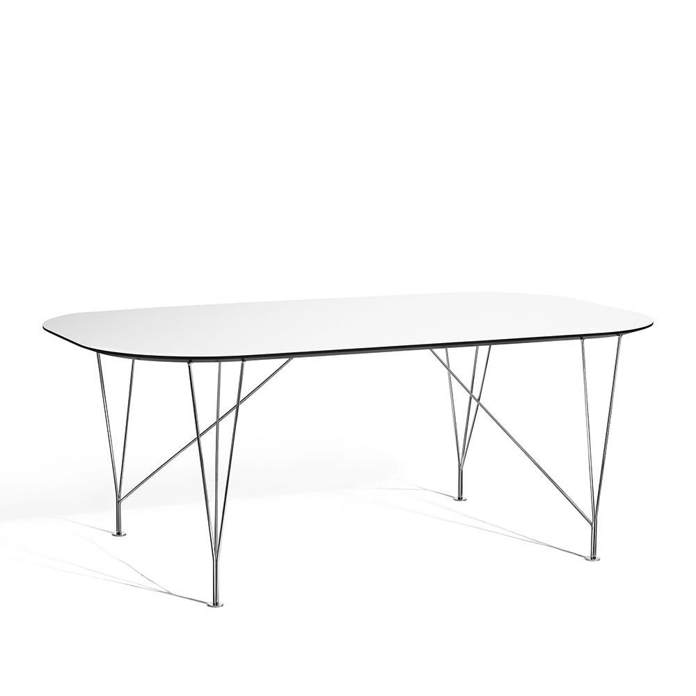 Et klassisk spisebord, perfekt for 6 personer, elegant topp og smale ben.