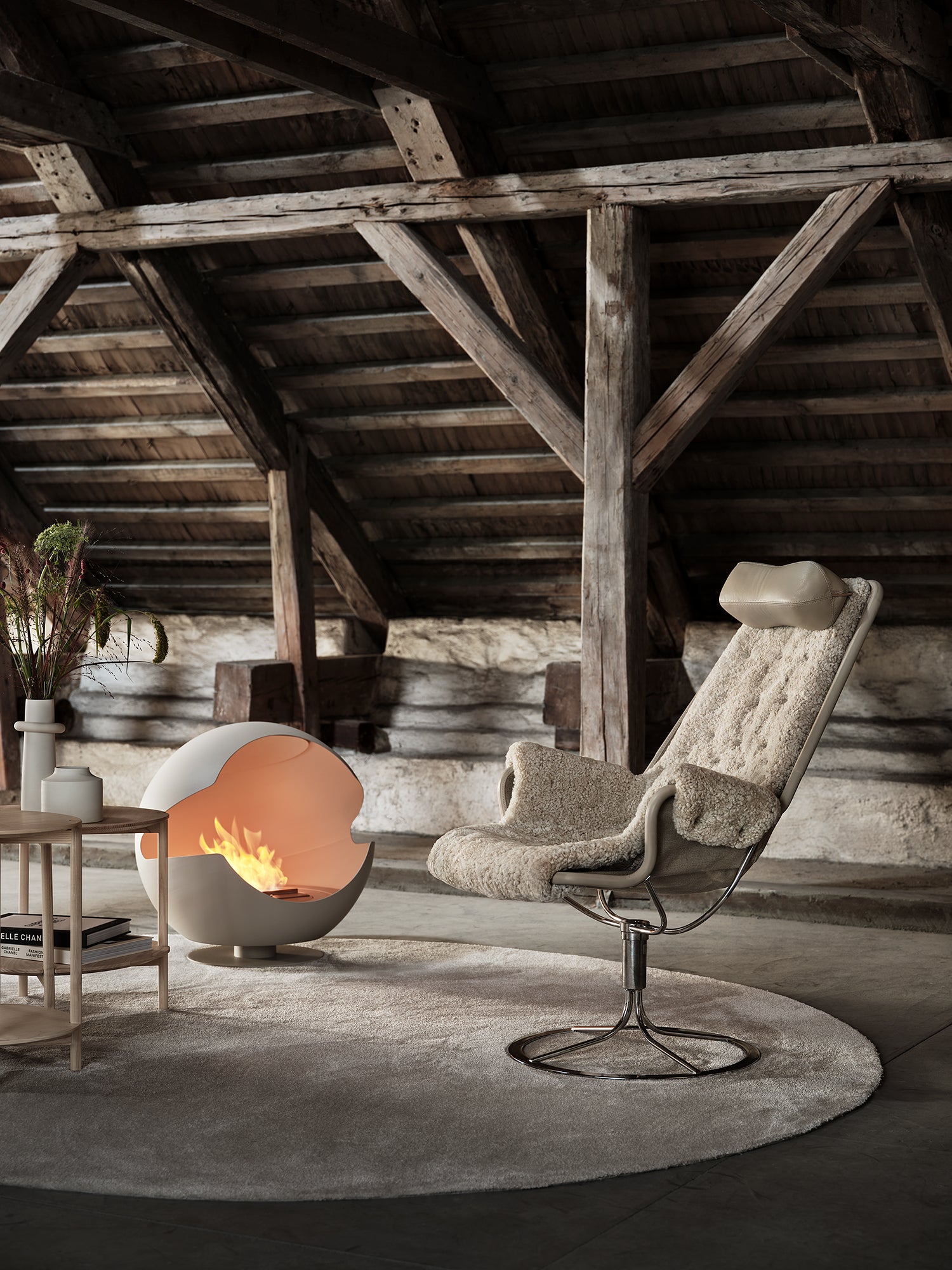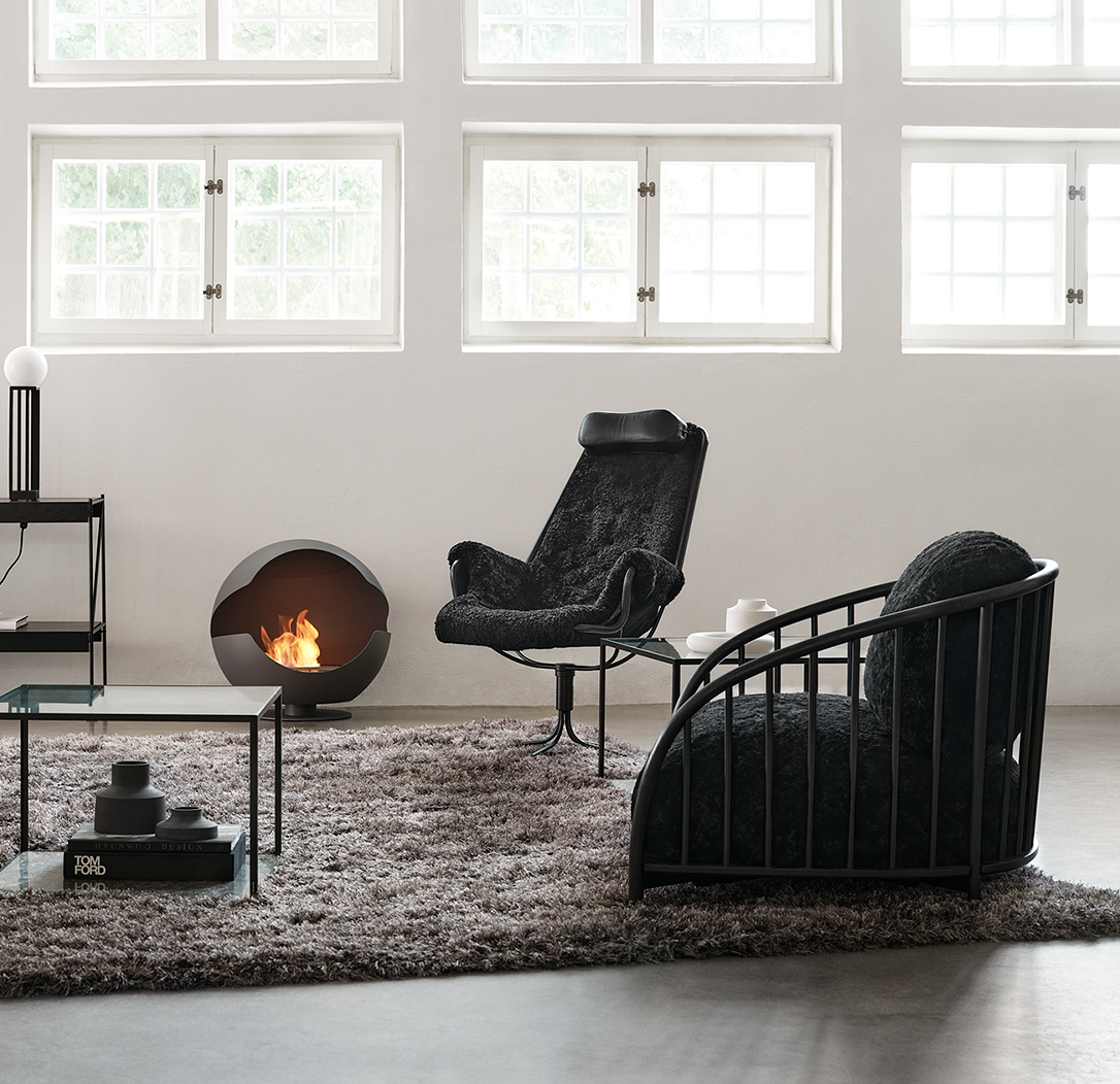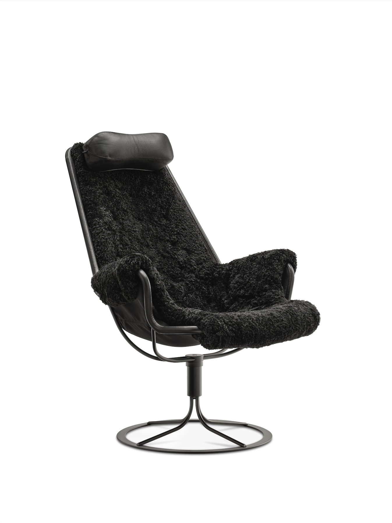 Ikonisk lenestol designet av Bruno Mathsson. Jetson-stolen gjenspeiler både hans lidenskap for komfort og en klassisk svensk, moderne designtilnærming. Den har et skålformet sete og ergonomisk utformet høy rygg med hodepute. Svingbar fot i krom med unik returmekanisme.