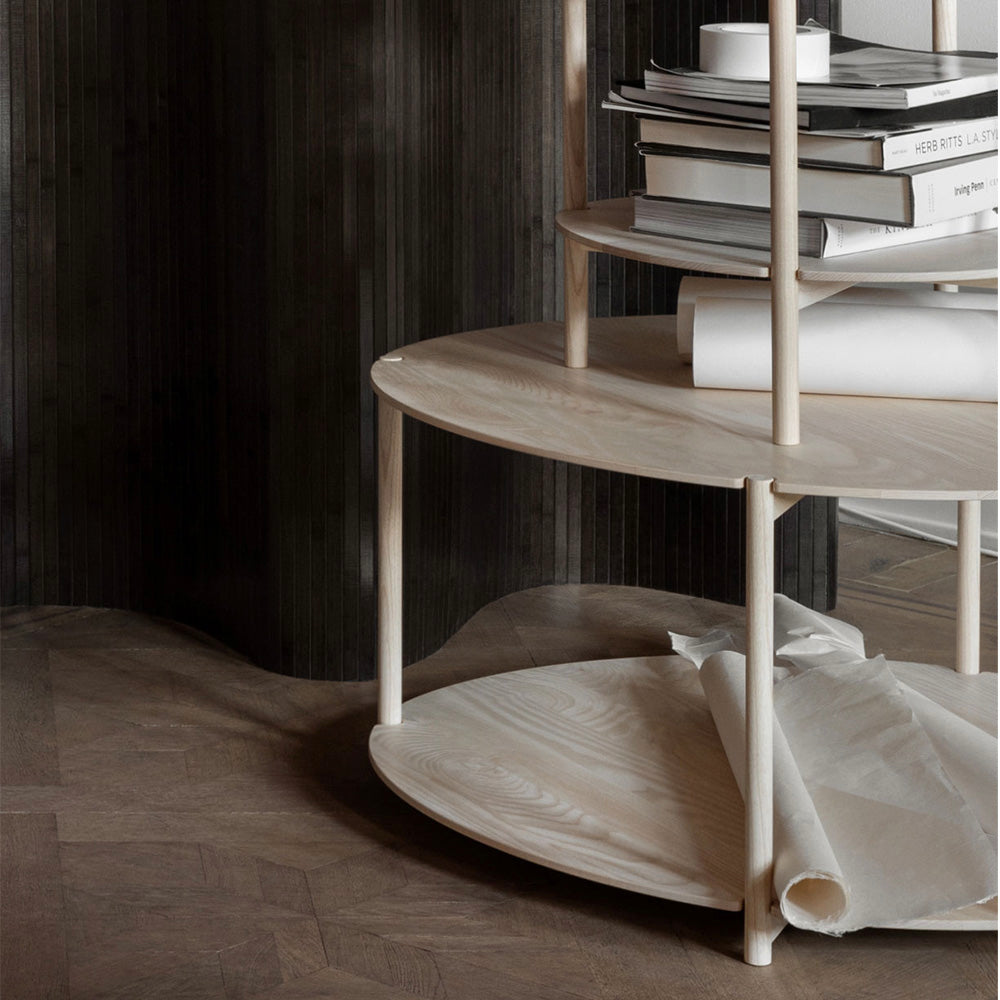 Lunaria trebord, rundt med uregelmessig form. Bordet finnes i tre forskjellige størrelser, og 3 ulike fargetoner. Bordene fungerer både som nattbord og som sofabord, og kan brukes alene eller sammen i grupper.