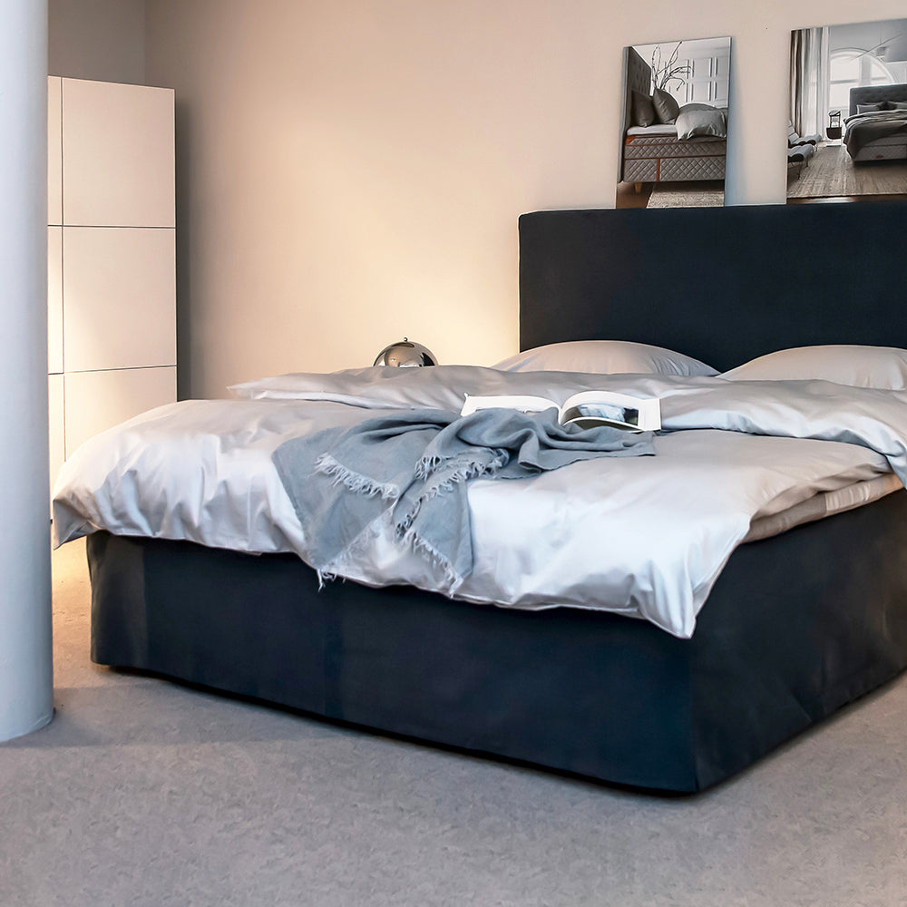 En håndlaget sengekappe, laget med et utvalgt kvalitetsstoff fra DUX. Gir sengen din et personlig preg.