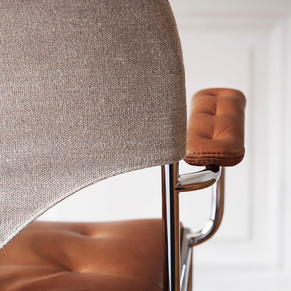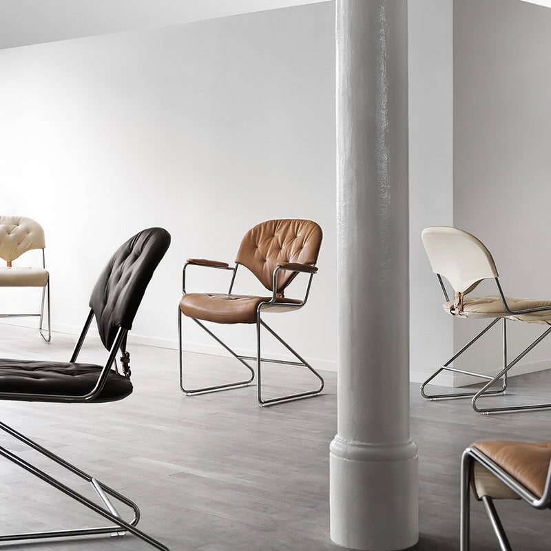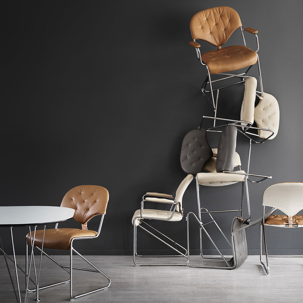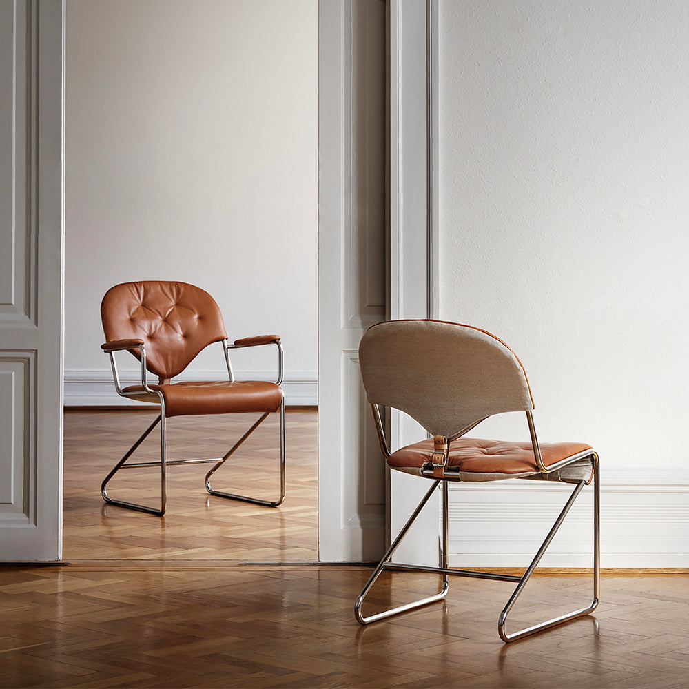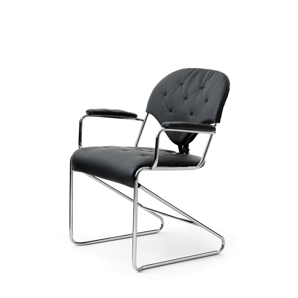 DUX Sam ble opprinnelig designet av Sam Larsson 1974, og er en klassiker som både kan brukes som en komfortabel kontorstol eller rundt spisebordet for minneverdige spiseopplevelser. Den er laget av høykvalitets skinn, og kombinerer ergonomisk ytelse med elegant design. Velg mellom ramme i svart eller krom, med eller uten armlener