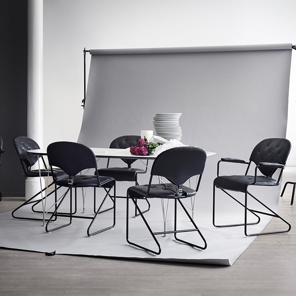 DUX Sam ble opprinnelig designet av Sam Larsson 1974, og er en klassiker som både kan brukes som en komfortabel kontorstol eller rundt spisebordet for minneverdige spiseopplevelser. Den er laget av høykvalitets skinn, og kombinerer ergonomisk ytelse med elegant design. Velg mellom ramme i svart eller krom, med eller uten armlener