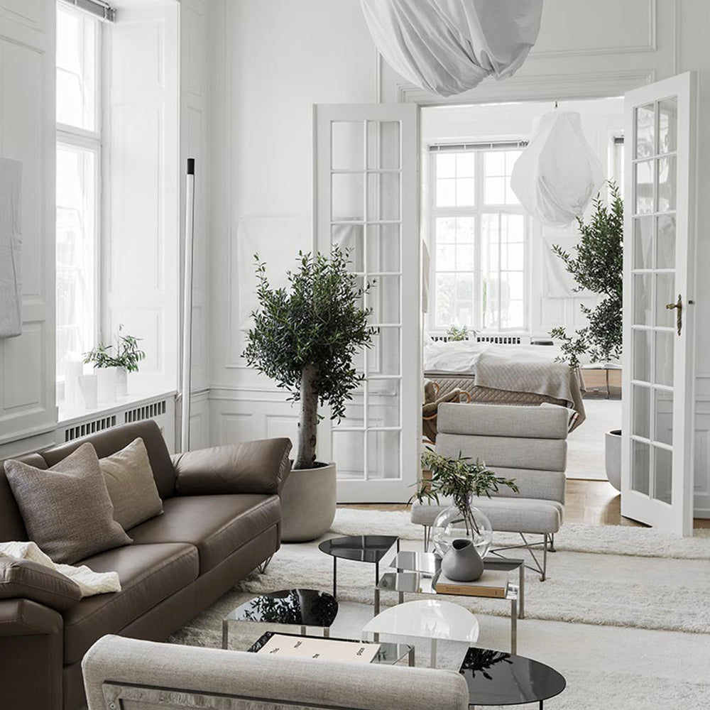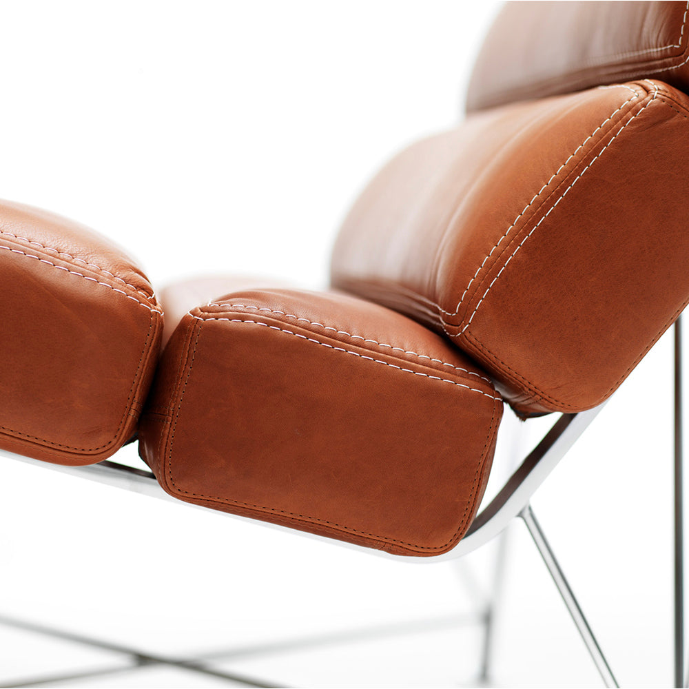 Klassisk lenestol designet av DUX Design Team. DUX spiralfjærer er integrert i de avlange putene og gir deg full støtte.